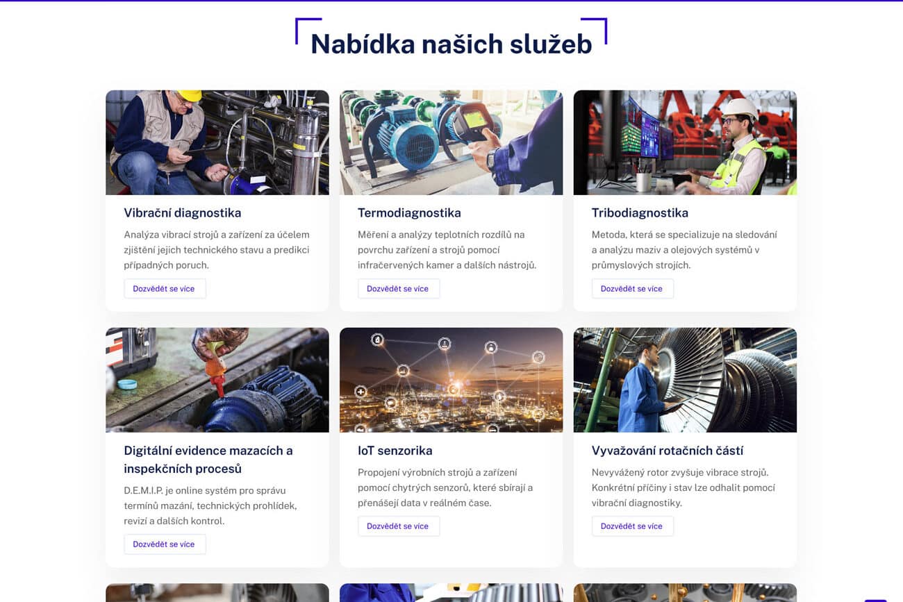 Firma Heistech s.r.o. nabízí technickou diagnostiku a prediktivní údržbu průmyslovým podnikům. Pomáhají zvyšovat spolehlivost strojů, snižovat náklady na údržbu a předcházet neplánovaným odstávkám. Mezi jejich službami najdete vibrační diagnostiku, termodiagnostiku, tribodiagnostiku, digitální evidenci mazacích a inspekčních procesů, IOT senzoriku, vyvažování rotačních částí, laserové ustavování, výměnu ložisek nebo audity mazání a fluid management.
